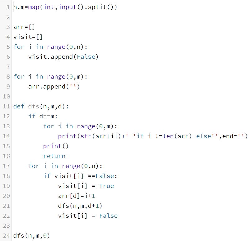 백준 문제 링크 및 번호문제는 순열을 작성하는것이다. N개의 숫자중에 M개의 숫자를 뽑아서 나오...