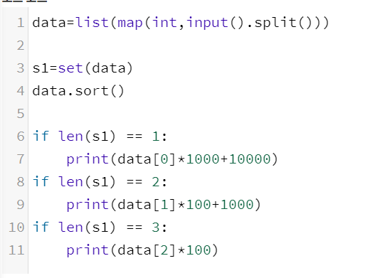 입력값이 세개로 고정되있음. and 시간제한 1초